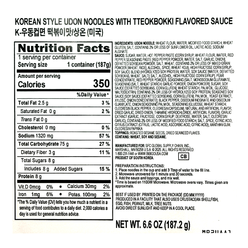 K-udon Cup Tteokbokki 6.6oz(187g)