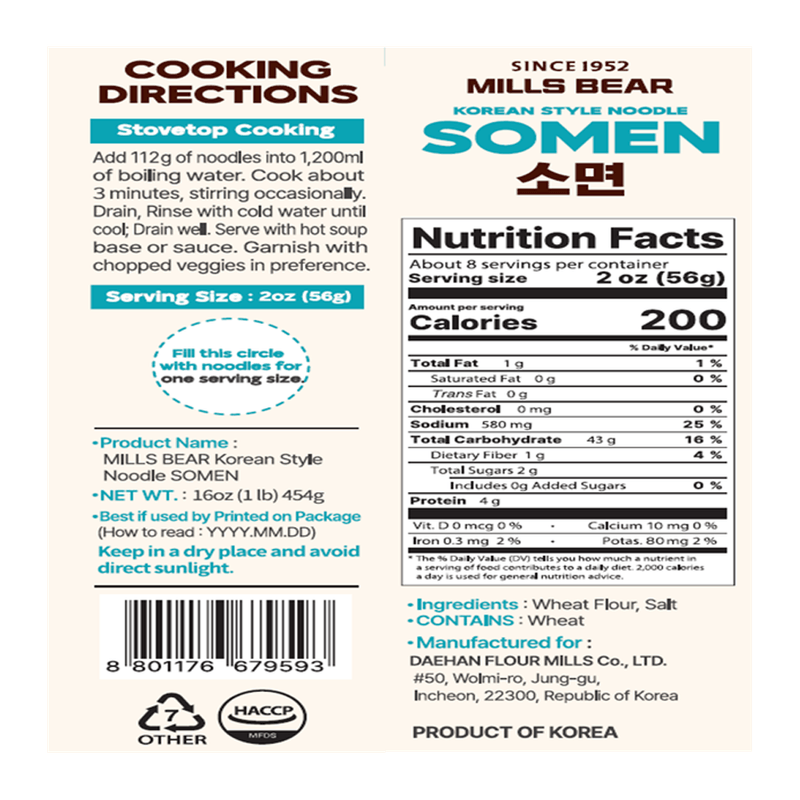Thin Wheat Flour Noodles Somyeon 1 Lb (454g)