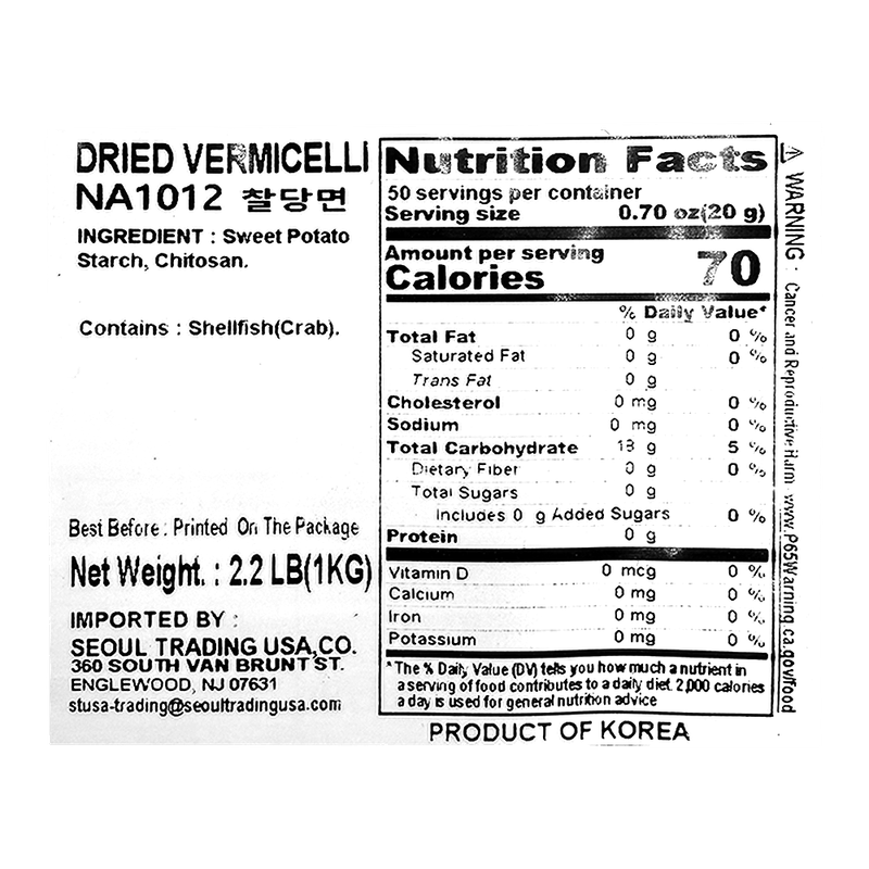 Korean Vermicelli Noodle 35.27 Oz (1kg)
