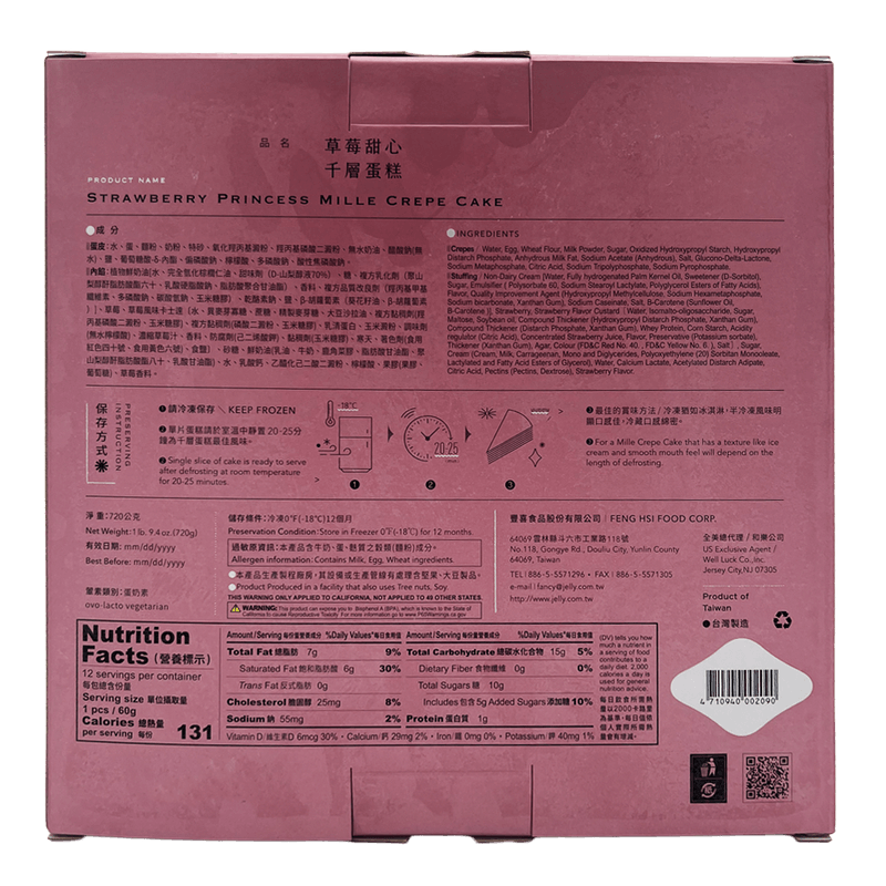 Mille Crepe Cake Strawberry 25.4 Oz (720g)